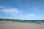 Oprócz sredniej zabudowy po drodze był mily park że sprzętem ratunkowym. Dowiedziałem się, że tam, w dobie srteamingu nadal mozna wypożyczyć film. Poza tym, że w Kanadzie jedzenie kupuje się w aptece a alkohol w sklepie tylko z alkoholami. Doszedłem też na plażę miejską, gdzie przy silnym wietrze i niewysokiej temperaturze aktywni byli tylko miłośnicy różnych form deskowania.